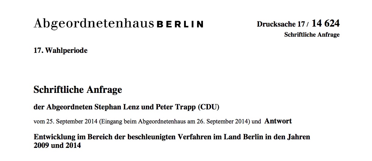 Gemeinsam mit dem Vorsitzenden des Innenausschusses im Berliner Abgeordnetenhaus, meinem Kollegen Peter Trapp MdA, habe ich die Verwaltung um Auskunft über die aktuellen Zahlen der beschleunigten Verfahren gebeten.